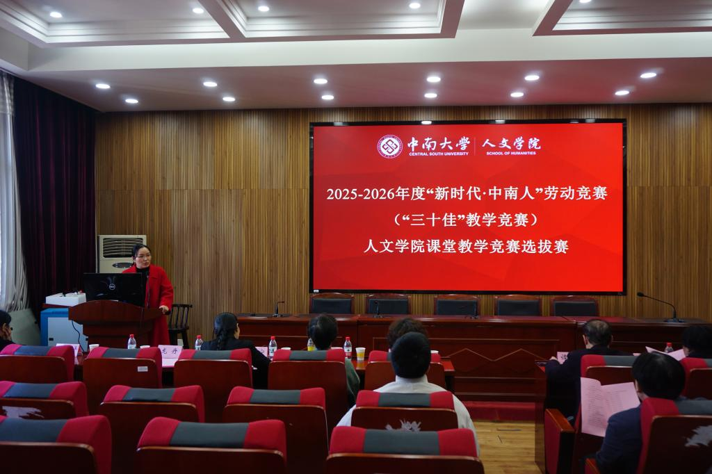 为进一步加强教师队伍建设,调动教师教学积极性与创造性,配合学校工会与本科生院的“三十佳”教学竞赛活动,择优选拔优秀参赛教师,12月3日下午,由人文学院工会和本科教务办联合举办的2025年“三十佳”院赛在麓南校区文法楼329会议室顺利举办。