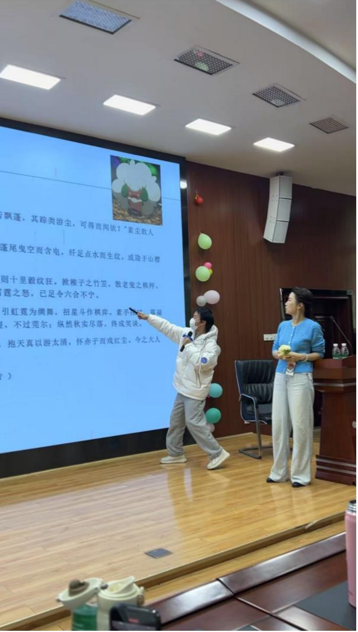 “若有人兮山之阿,被薜荔兮带女罗……”本学期最后一次课已经结束,课后,同学们手挽着手,不经意地吟唱着《九歌·山鬼》的句子。那一瞬间,他们也许已经真切地感受到了,古代文学不再只是课本上的文字,更是他们生活中有温度、有生命力的陪伴。这门课的探索仍在继续,两位老师也将持续尝试、不断完善,只为让更多学生感受到:原来中国古代文学可以如此贴近心灵,如此生动而深刻。