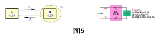 基于广义kcl定律,容易得到:图5中流入电路b中的电流必等于从该电路中流出的电流。理论联系实际,用该定律可解释漏电保护器的工作原理。