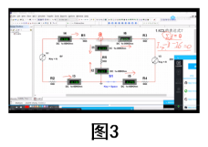 掌握了结点概念,师生开始基于multisim软件共同进行虚拟仿真实验研究(图3)。学生观察实验现象,在老师引导下分析数据,找出规律,得到了kcl定律的内容:电路中任意一个结点上,流入结点的电流之和等于流出结点的电流之和,即:σi流入=σi流出。了解了kcl定律基本内容后,进一步抛出问题讨论:若改变支路元件(保证支路电流不变),kcl定律依旧成立吗?